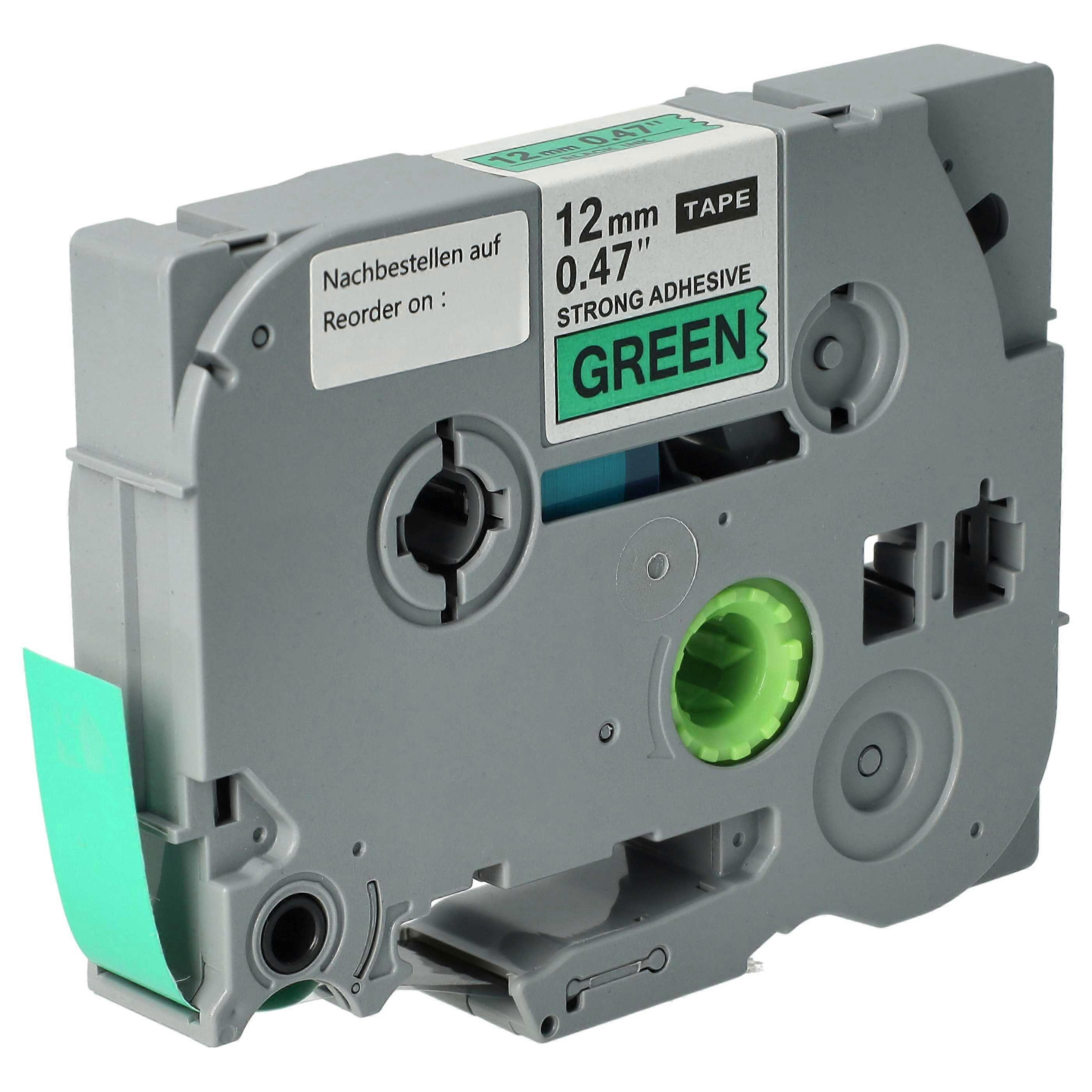 vhbw Schriftband-Kassette kompatibel mit Brother PT D200, Cube+ Etiketten-Drucker 8m x 12mm Schwarz auf Grün, Kunststoff, Extra Stark, Laminiert