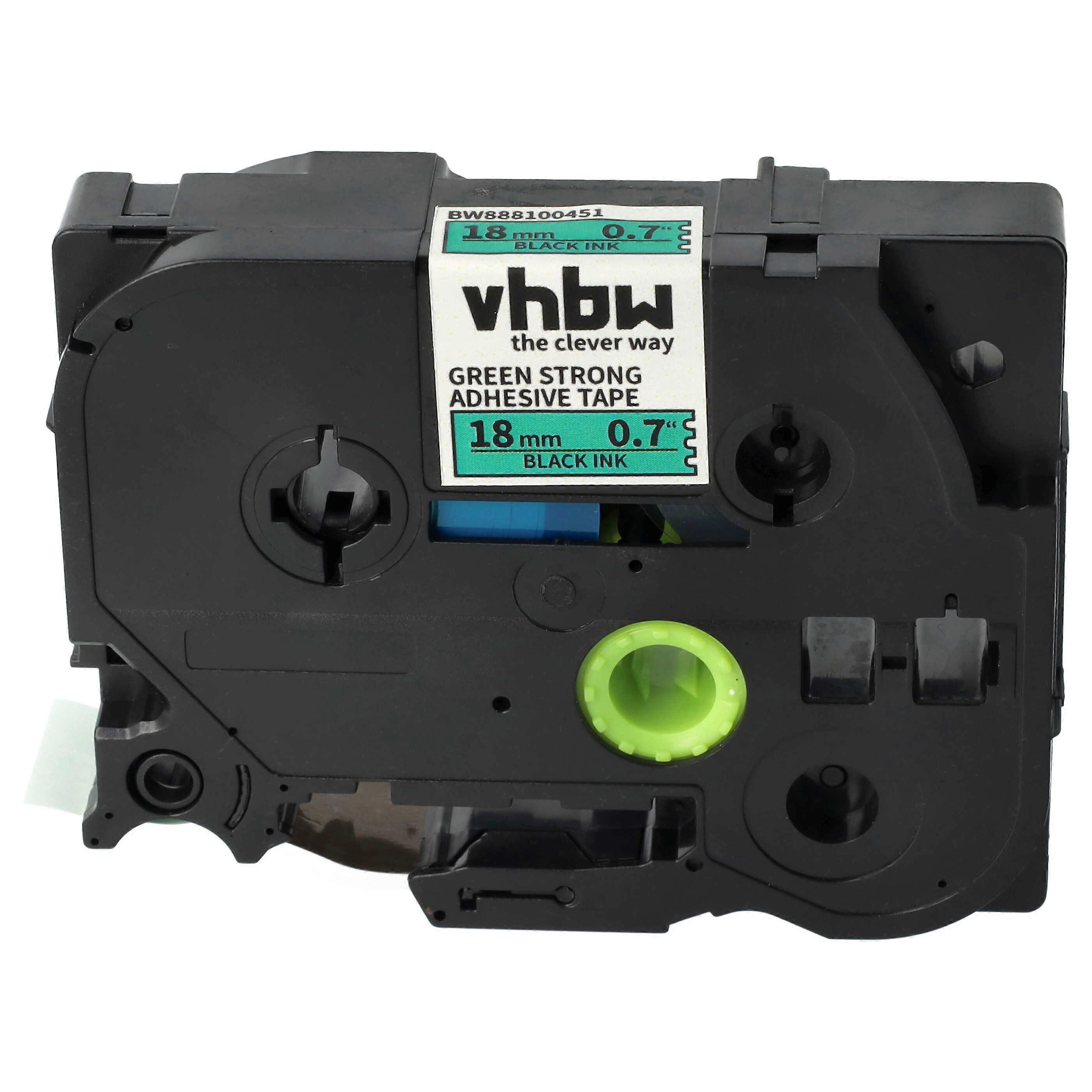 vhbw Schriftband-Kassette kompatibel mit Brother PT 540C, 540, 530 Etiketten-Drucker 8m x 18mm Schwarz auf Grün, Kunststoff, Extra Stark, Laminiert
