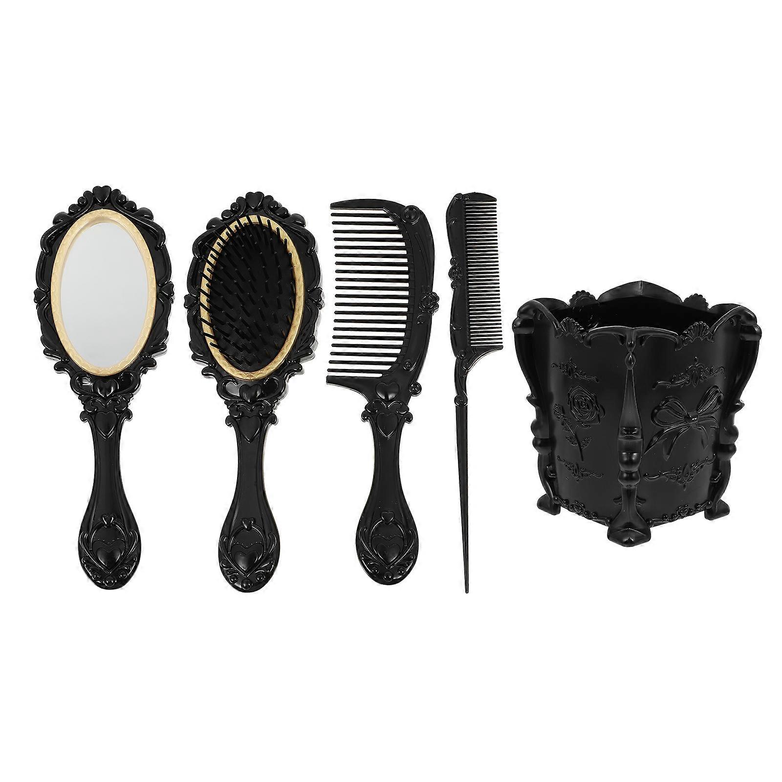 <b>Description</b> This is a hair brush and comb set which include 4 kinds of and storage holder. The best hair brush can meet your different hair care needs. Fit for salon, barbershop or home use. Good for displaying at desktop, dresser table, bedroom and bathroom vanity. <b> Features</b> <b> </b> - Material: Plastic. - Size: 20.20X7.00X3.50cm/7.94X2.75X1.38inch. - Painless bristles that massage the scalp and increase circulation, which may help increase hair growth. - Works great on wet, dry, long, short, thick, curly hair. Perfect comb for women, men and kids with all hair types. - The cosmetics container can be used to hold eyebrow pencil, eyeliner, makeup brush, etc. - It can also be used as a pen holder with pushpins and other office supplies in it. - gift for girls, friends and makeup lovers. Good for displaying at desktop, dresser table, bedroom and bathroom vanity. Package list: 1 x storage holder 4 x hair combs