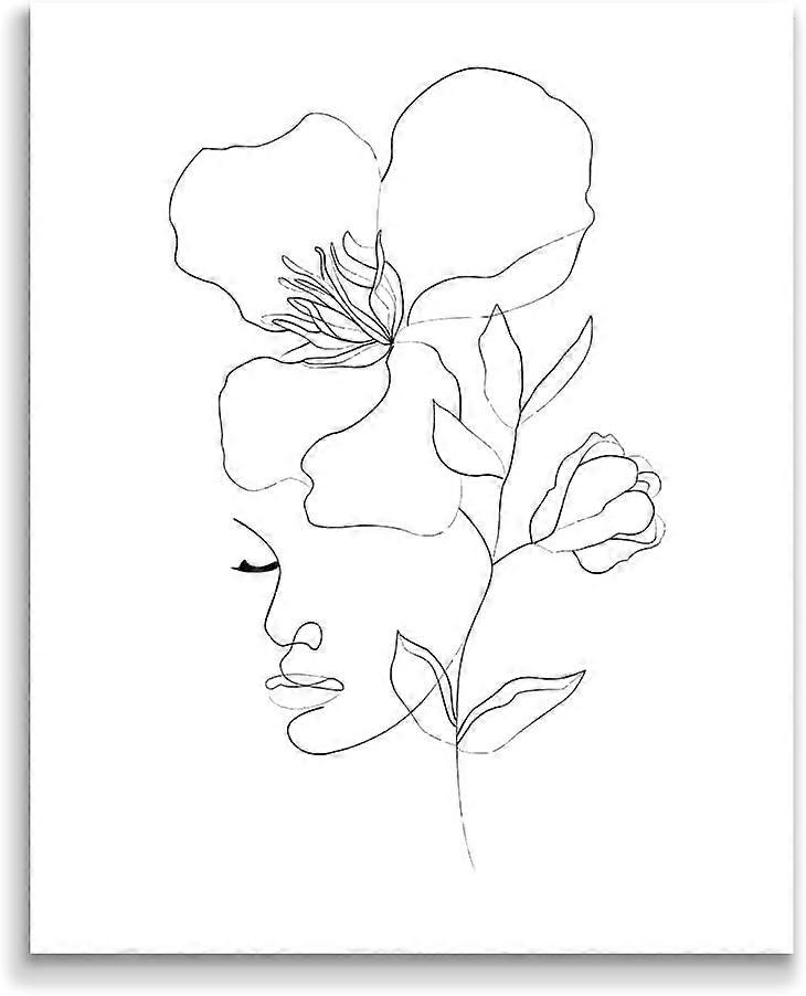 1 Pc Minimalist Line Art Print, Abstract Flower & Woman, Boho Style Wall Decor, Unframed 8x10 inch (20.5x25.4cm)