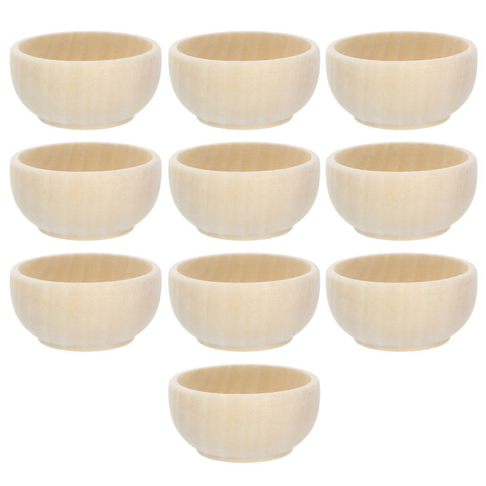 10Pcs Unpainted Wood Bowls DIY Wood Bowls Mini Unfinished Crafts Bowls