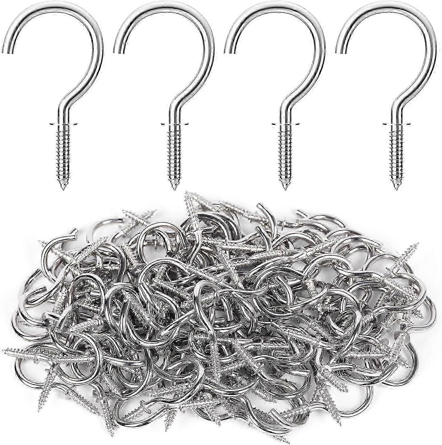 Color: SilverMaterial: Carbon SteelSize: 1 inchMax Load: 18 lbPackage Quantity: 100 Pcs * Screw in Hooks - Solid steel materials with surface polished finish, sturdy and hard-wearing, anti-rust and anti-corrosion, smooth surface will not scratch your hands or items. - Easy to install, can twist into in a few seconds, sharp screw ends bites into wood, wall or ceiling swiftly without stripping, holds a lot of weight and provides firm support and durability. - Perfect for organizing or decorating kitchen, bathroom, storeroom, garage, patio, pergola, garden, office, practical and versatile. Hang bags, keys, hats, clothes when you back home, save space and free of mess. Hang utensils, mugs, cups, pots and pans, keep kitchen countertop organized and tidy. Hang wind chimes, wreaths, stockings, bird feeders, suncatchers, banners, stained glasses to decorate home. Hang plants, baskets indoors and outdoors with no issues, sturdy and stable. - Pre-drill a small pilot hole will be suggested for more perfect installation. - Please keep away from children as the hooks contains sharp ends. - If the package is damaged that caused missing pieces due to rough handling in transit, please feel free to let us know and we will reissue or compensate for the loss as soon as posible. RELBRO 1 Inch Silver Screw in Hooks Sturdy & Robust Screw Hooks for Hanging String Lights Versatile Threaded Screw Hooks Screw in Hooks for Essentials Screw in Hooks for Utensils Screw in Hooks for Ornaments Screw in Hooks for Plants Heavy Duty Screw Hooks Please Note: