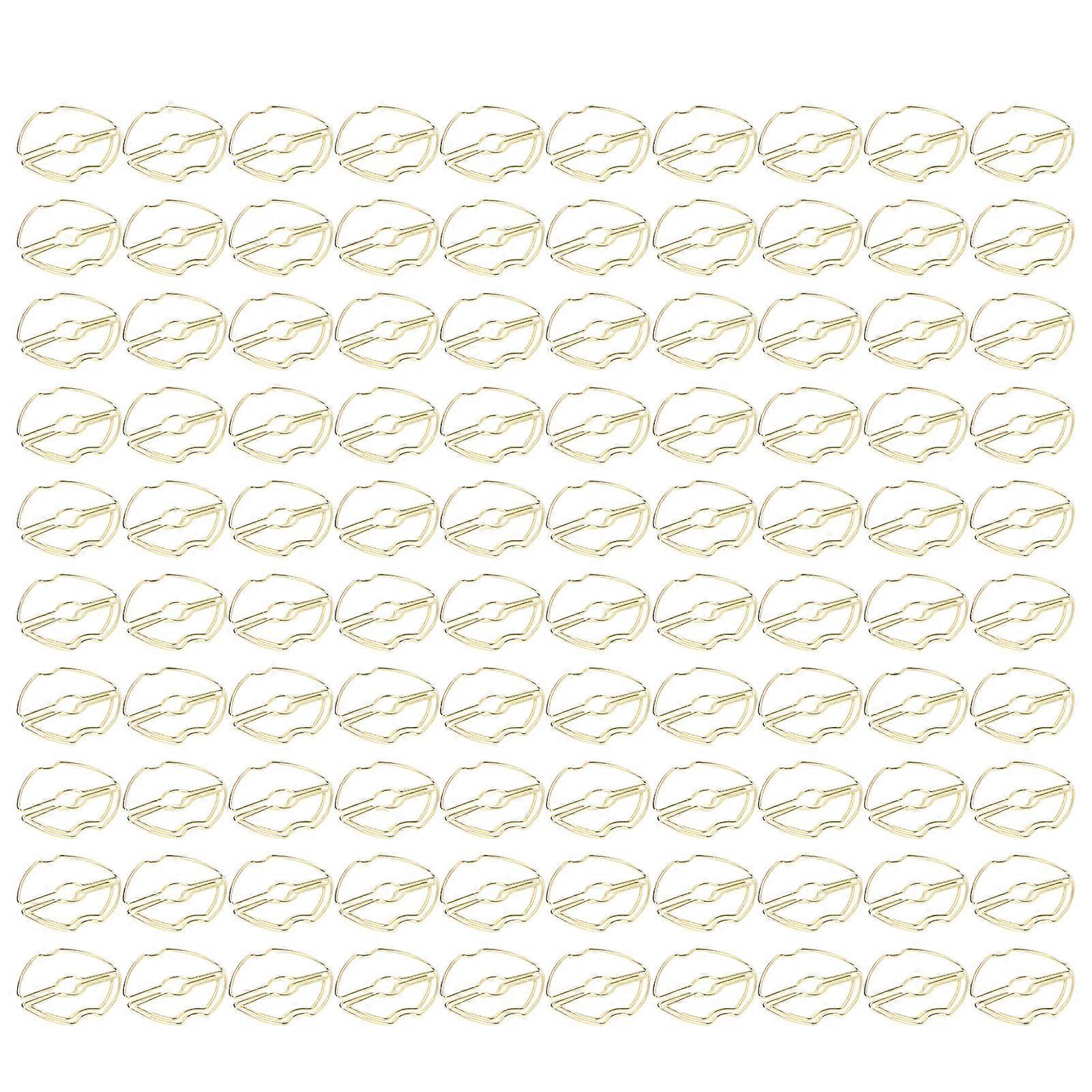 100PCS Lips Shape Paper Clips Electroplating Process Golden Metal Paper Clips Portable Paper Clips for File Classification