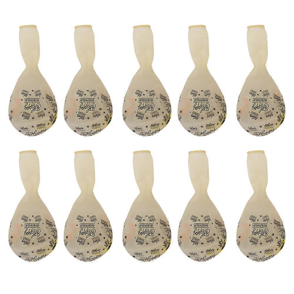 10Pcs 12in Transparent Latex Balloons with Happy Birthday Rose Gold