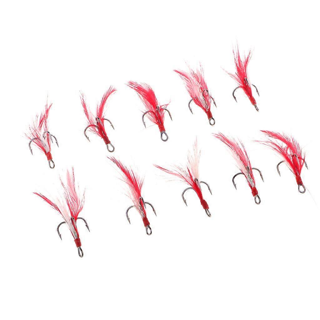 10pcs Stainless Steel Sharp Fishing Treble Hooks with Feather