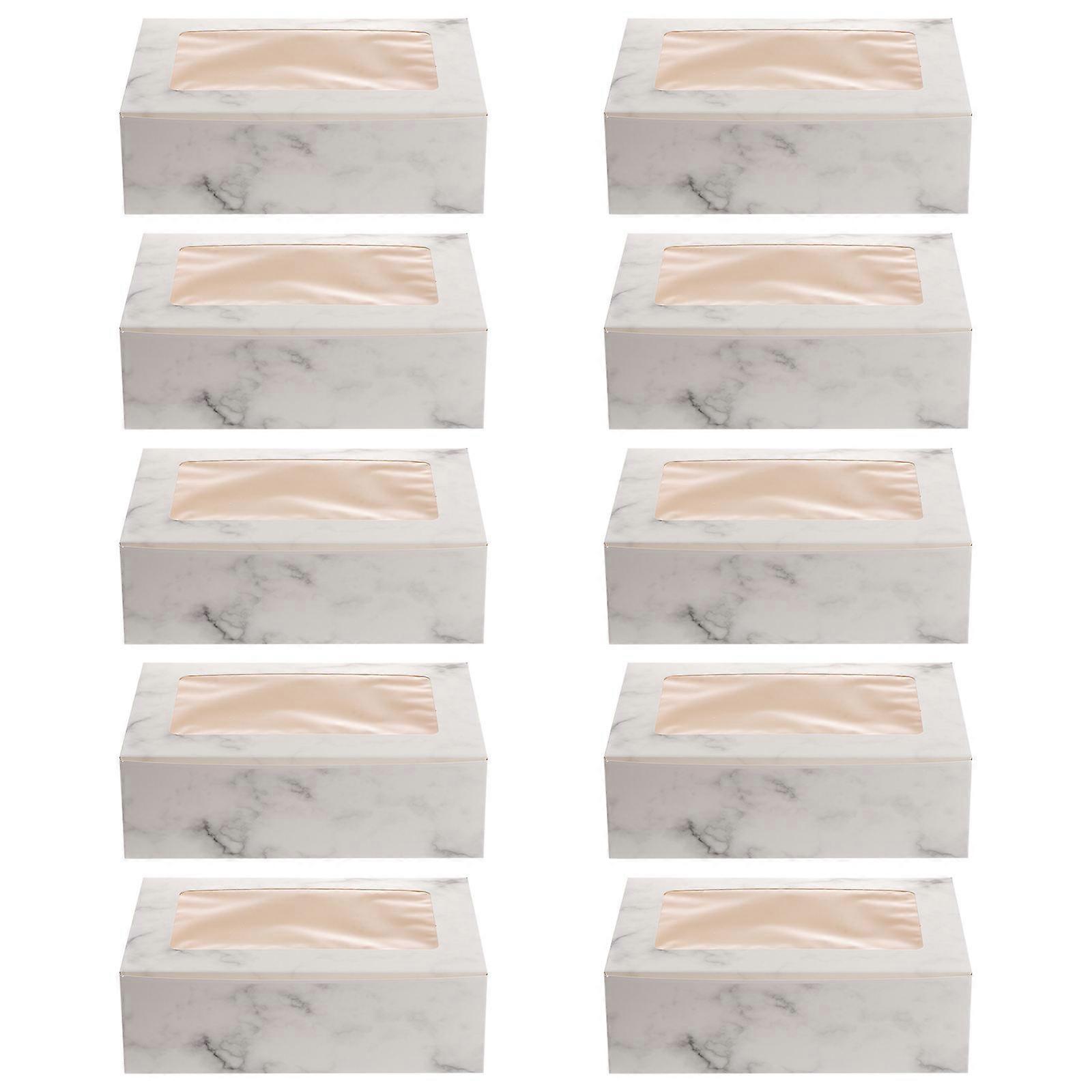 10pcs Paper Marbling Box Dessert Containers Muffin Carriers with Clear Window