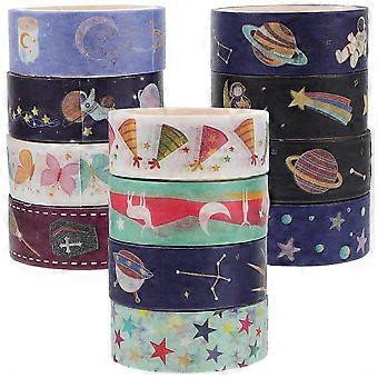 12 Rolls Universe Themed Aesthetic Washi Tape for Scrapbooking, DIY Crafts, Journaling & Creative Projects