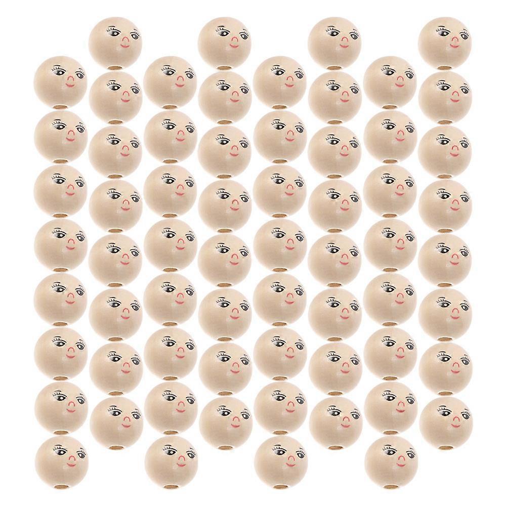 120Pcs Round Smile Face Beads Wooden Loose Beads For Classroom Activities Assorted Color Craft Making