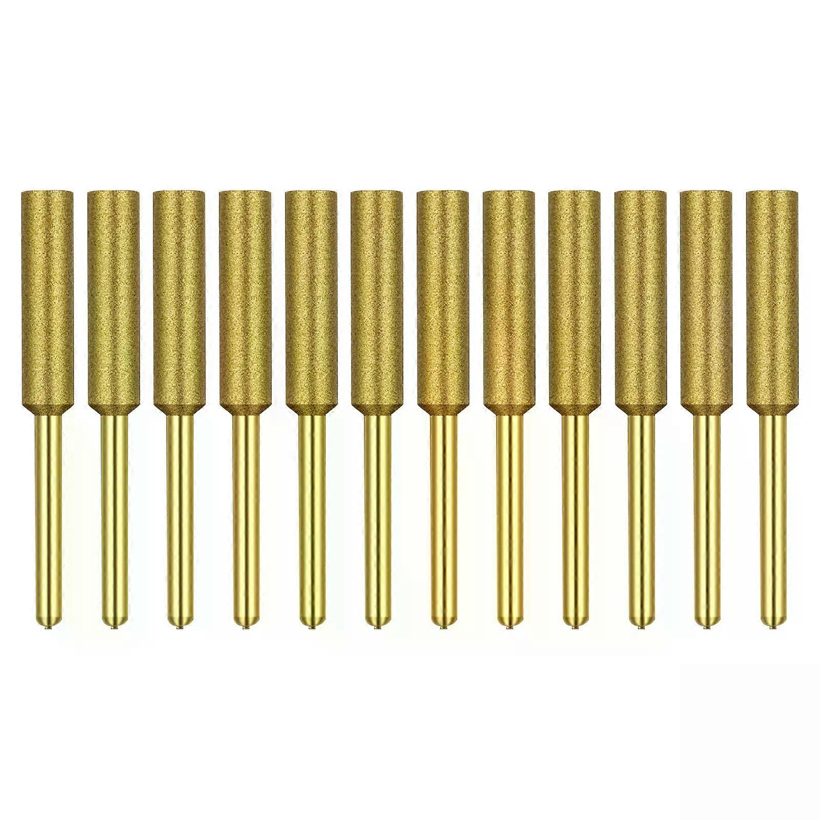 12Pcs 1/8 Diamond Chainsaw Sharpener Titanium Plated Burr Stone File Diamond Sharpening Wheels for Chain Saw Stone Jewerly Wood