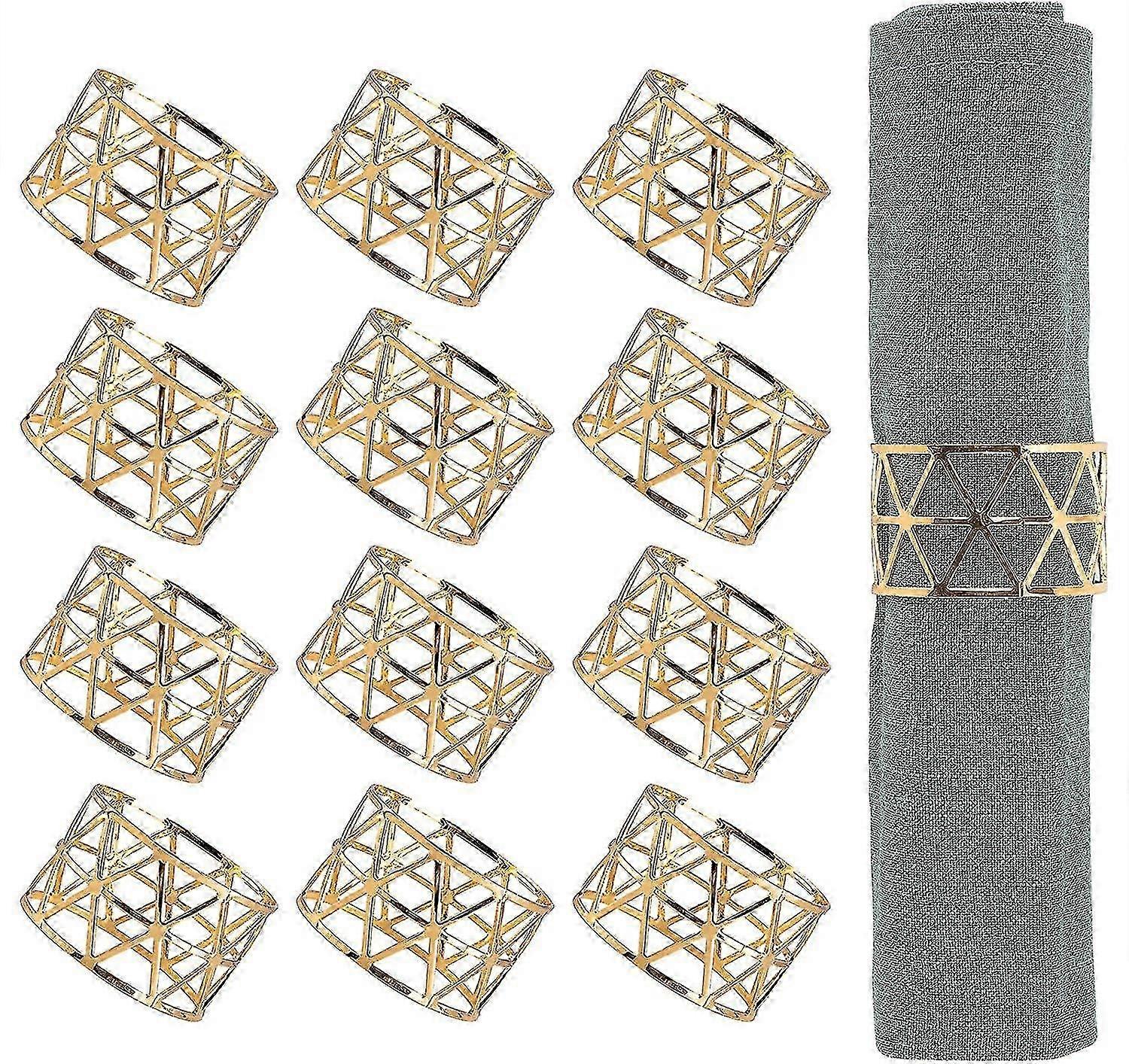 12pcs Elegant Gold Napkin Rings, Ring Holders for Dining Table Settings