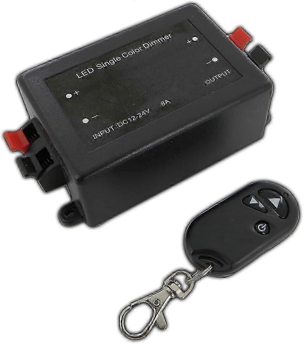 Wireless dimmer for LED lamps (max 48 W), 12 V AC/DC.- Easy assembly (on the 12 V DC LED transformer). Autonomy : approximately 20 m - With memory function. Easy connection via two cable lugs (maximum 1.5 mm).- Dimensions (dimmer): 106 x 58 x 34 mm. Practical dimmer for 12 V LED lamps, you can change the light intensity using the included remote control. The wireless LED dimmer is connected to the 12 V DC transformer and is suitable for almost all LED lamps. This dimmer for 12 V LED lamps you can change the light intensity using the supplied remote control. The wireless LED dimmer is connected to the 12 V DC transformer and is suitable for almost all lamps LED. The wireless dimmer has a range of approximately 20 meters and can be directly integrated into the lamp.-You can also control the dimmer from another room, as it works by waves radio and not by infrared like other dimmers. In addition, the LED dimmer has a memory function which allows you to find the last light intensity used the next time you turn it on. Thanks to the dimmer's remote control, you can also turn your device off and on. luminaire. Important information: Suitable only for 12 V DC LED transformers. Not suitable for 12 V AC halogen transformers. Attention to the input and output!Otherwise the dimmer may be damaged. Pay attention to the polarity when connecting.If + and - are reversed the dimming function is not provided. Technical characteristics: Dimmer for 12V AC/DC LED bulbs for LED lamps, LED garlands etc. Easy connection thanks to two cable lugs (maximum 1, 5 mm).- Power supply (continuous): 12 V DC. Maximum: 4 A (48 W). - Peak power (short duration): 8 A. Dimensions (dimmer): 106 x 58 x 34 mm. Dimensions (remote control): 57 x 30 x 11 mm. Range: Approximately 20 meters . Standby current: