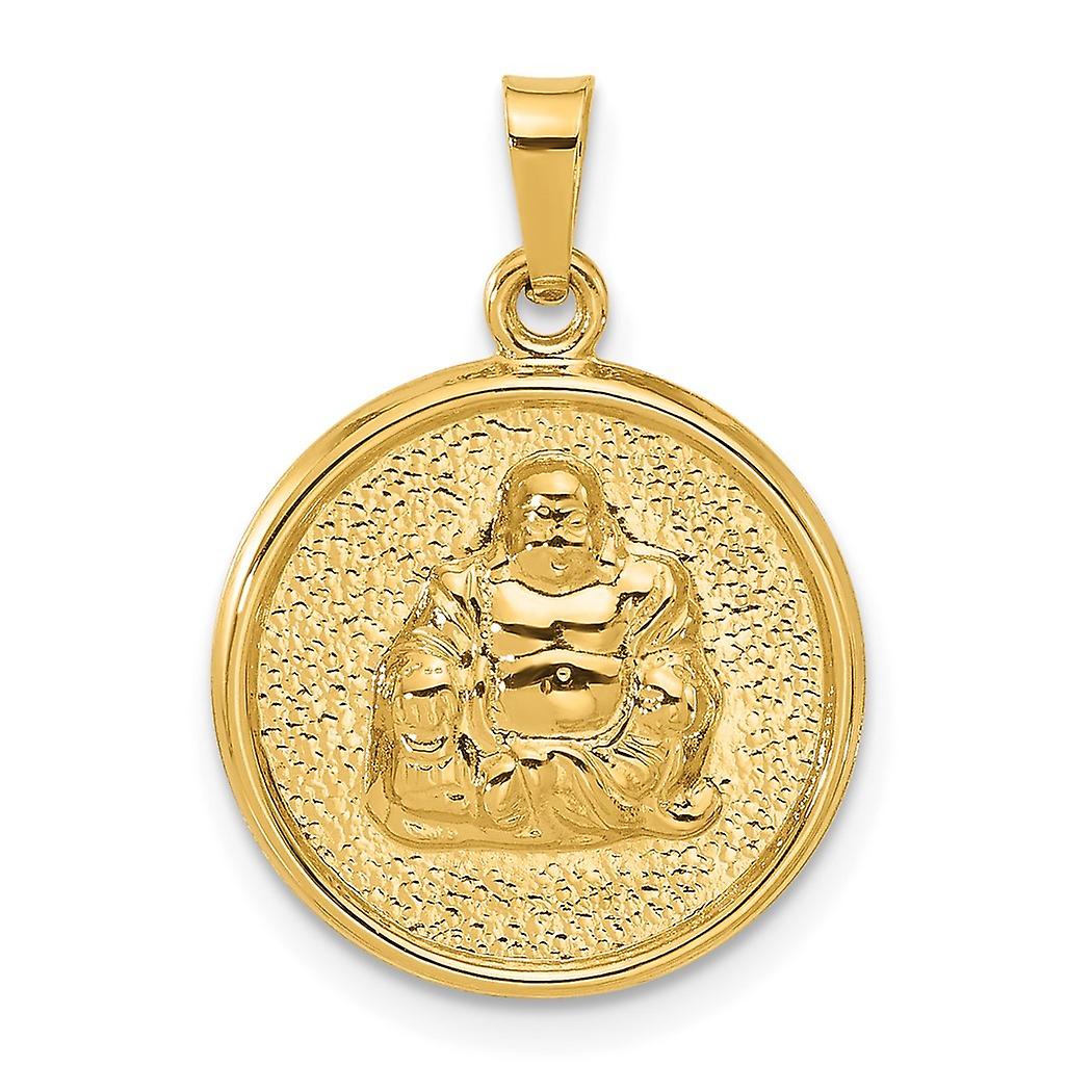 16.7mm 14k Solid Yellow Gold Hollow Buddha Charm Pendant Necklace for Women - 1.1 Grams