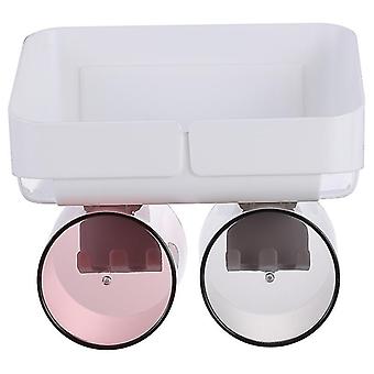 16.8X12.3x8cm White 2people Toothbrush Holders 1 Set Simple Bathroom Storage Bracket Nail-free Stora
