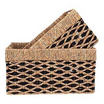 2 paniers rectangulaires en jonc de mer noir et brun clair