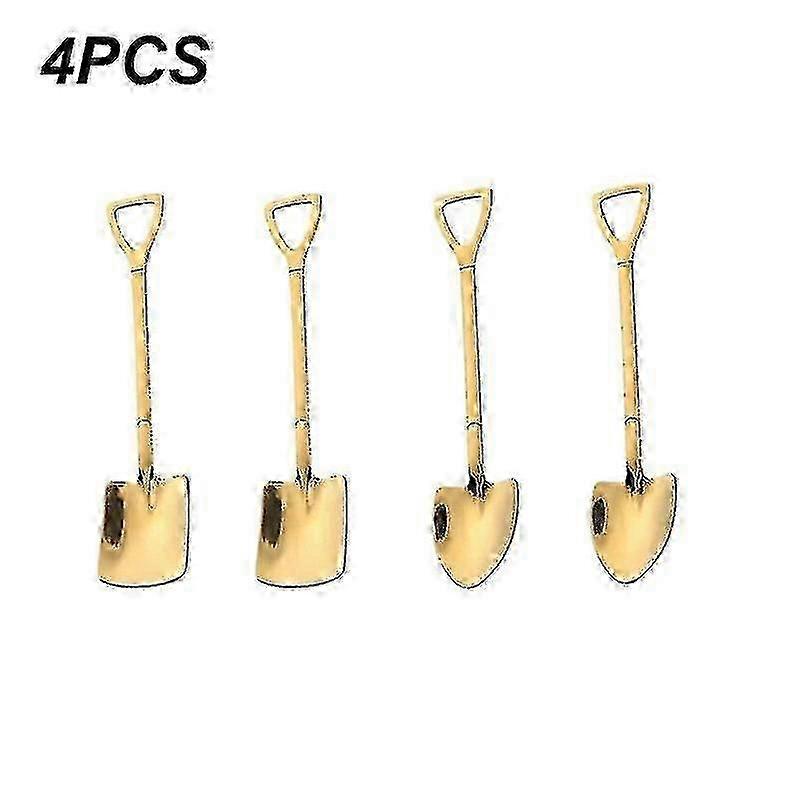 2025 2PCS Flat Shovel 2PCS Point Shovel Coffee Spoon Cutlery Set Stainless Steel Retro Shovel Throwing (Golden)--