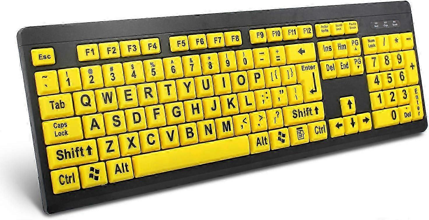 2025 High Contrast Yellow Keyboard, Large Print Design for Visually Impaired, Spill Resistant Keyboard, Ergonomic Design, Reduced Hand Fatigue with