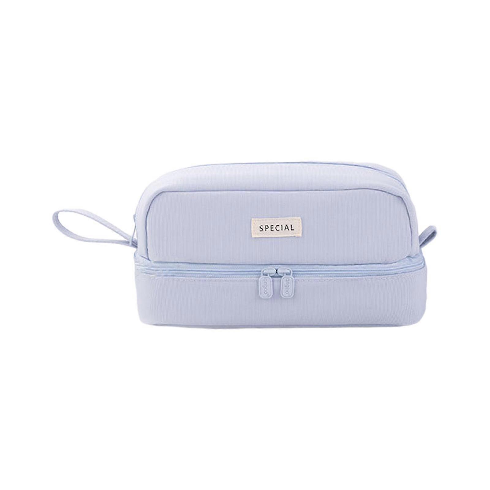 2025 Large Capacity Pen Case Zippered Pen Pouch Double Layer Pencil Bag with Portable Handle Stationery Bag for Girls Boy light blue