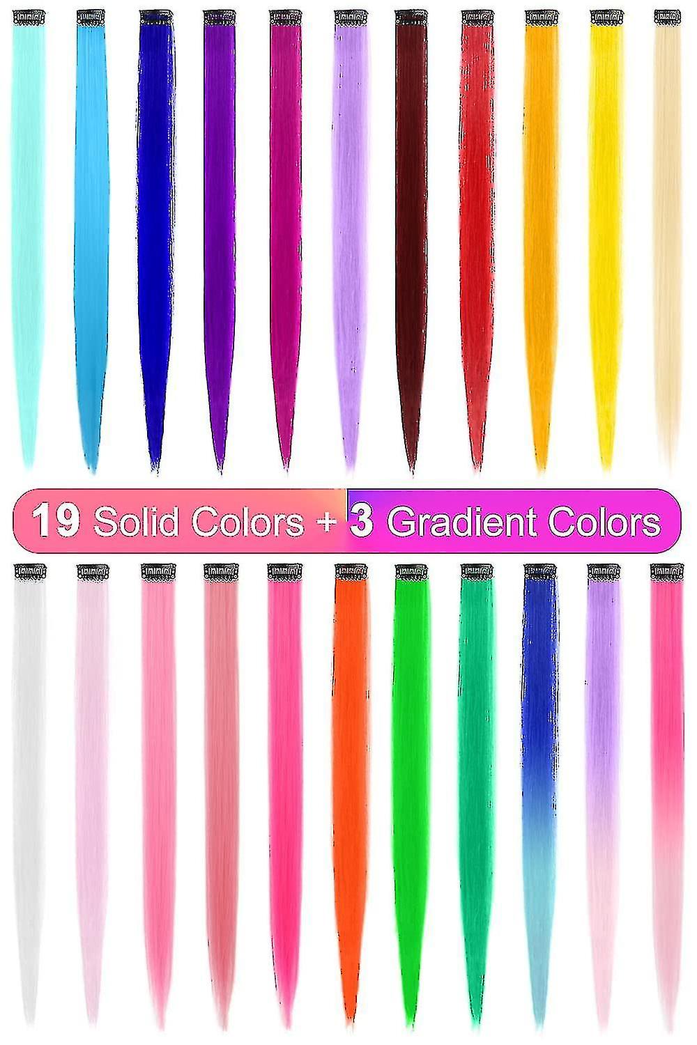 22 Pcs Colored Hair Extensions, Multi-colors Party Highlights Clip Synthetic Hair Extensions 20 Inch ,100% Heat-resistant Synthetic Fiber(colorful Set