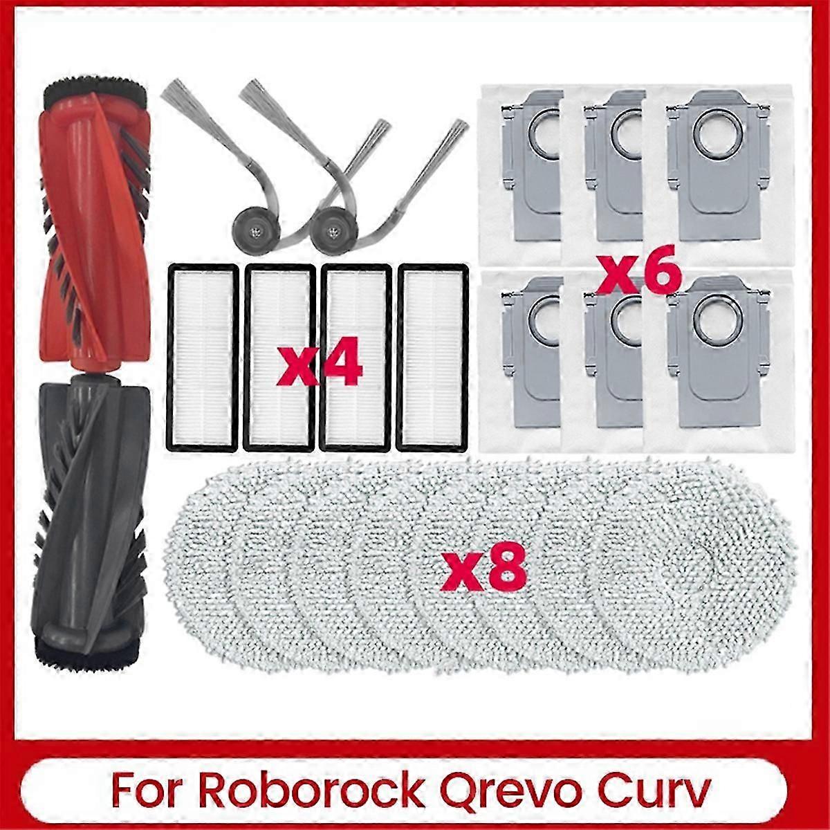 22PCS compatible Roborock Qrevo Curv Robot Vacuum Cleaner Parts Dual Main Brush Side Brush Filter Mop Cloth-jc