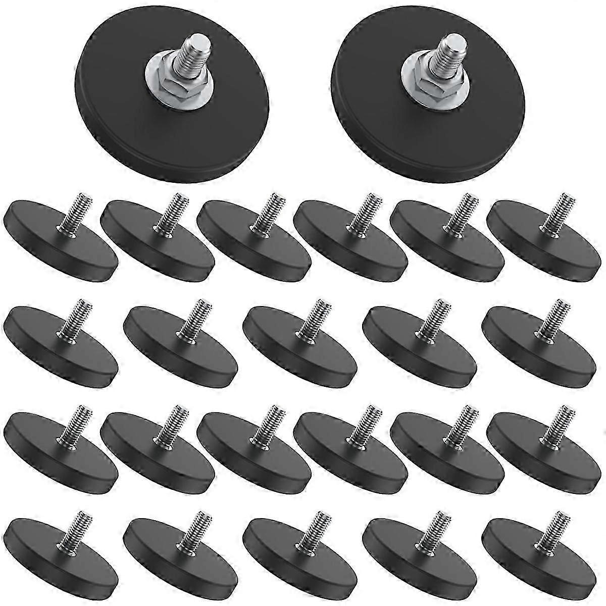 24 Pieces Rubber Coated Magnets 1.69 Inch 30 Lbs M6 Neodymium Mounting Magnets Threaded Studs for Lighting