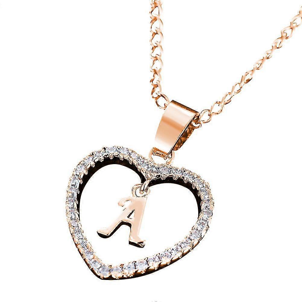 26 Letters Alphabet A To Z Initial Cubic Zirconia Heart Pendant Women Necklace