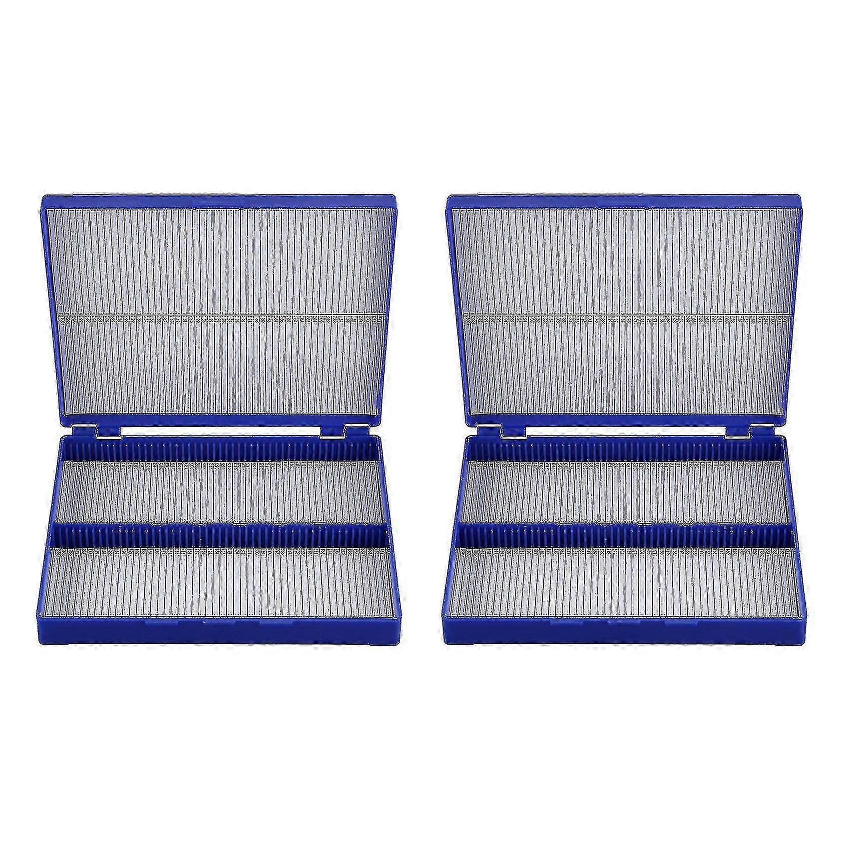 2x Royal Blue Plastic Rectangle Hold 100 Microslide Slide Microscope Box