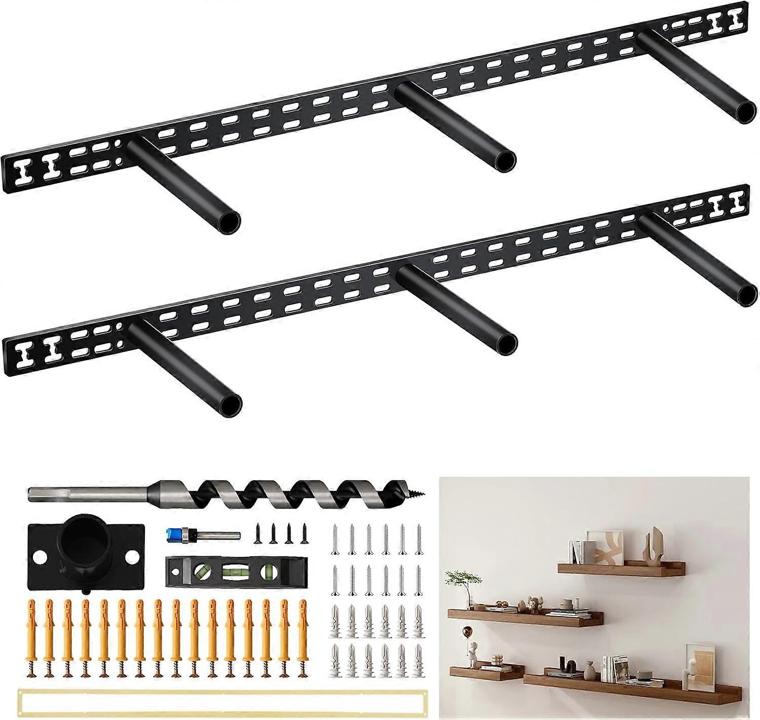 34 in Floating Shelf Hardware - 34" x 6" Wall Mounted Hidden Brackets, 2Pcs Thickened Solid Steel Floating Shelf Brackets 3-Year Service