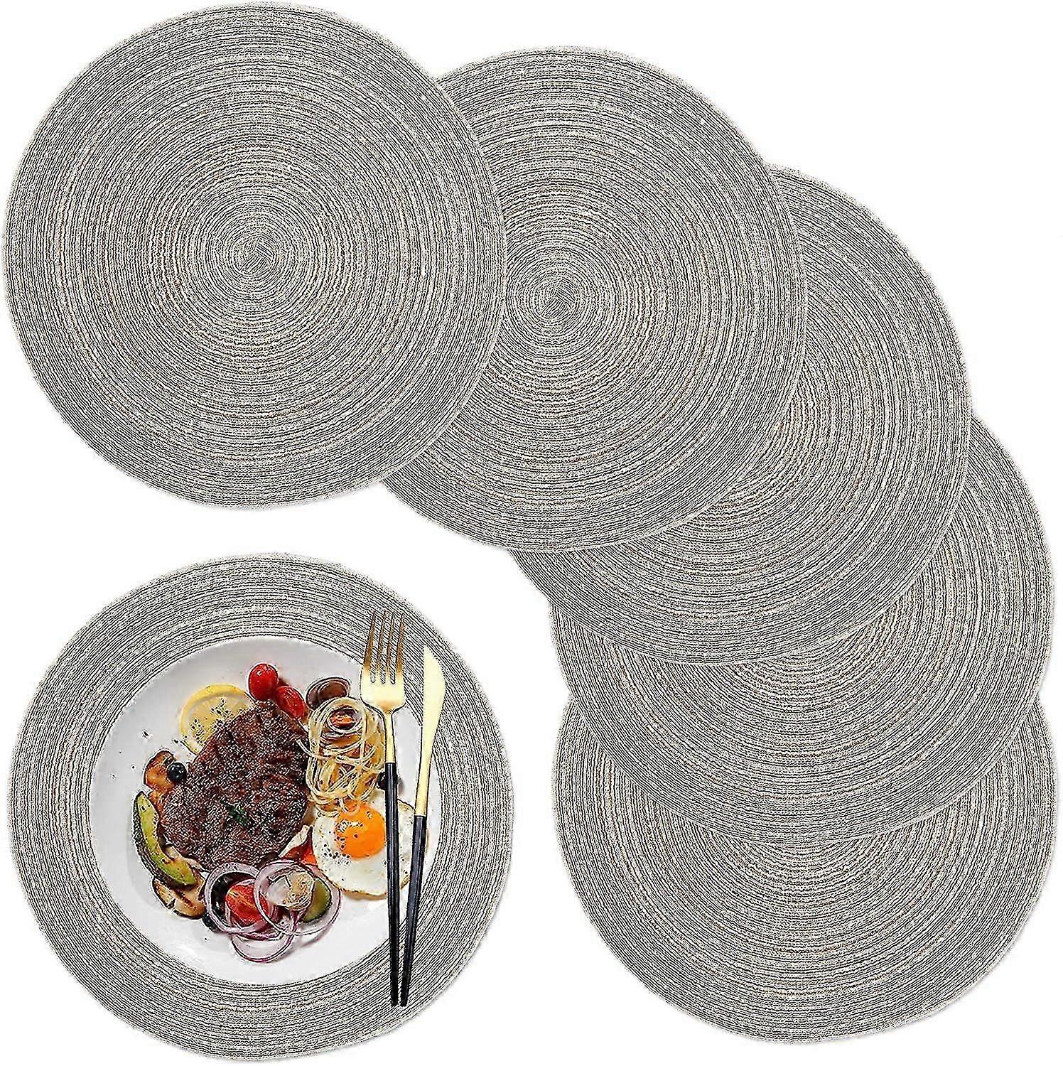 36cm(Beige) Placemats, Round Placemat PP Braided Set of 6 Washable Heat Resistant Non-Slip