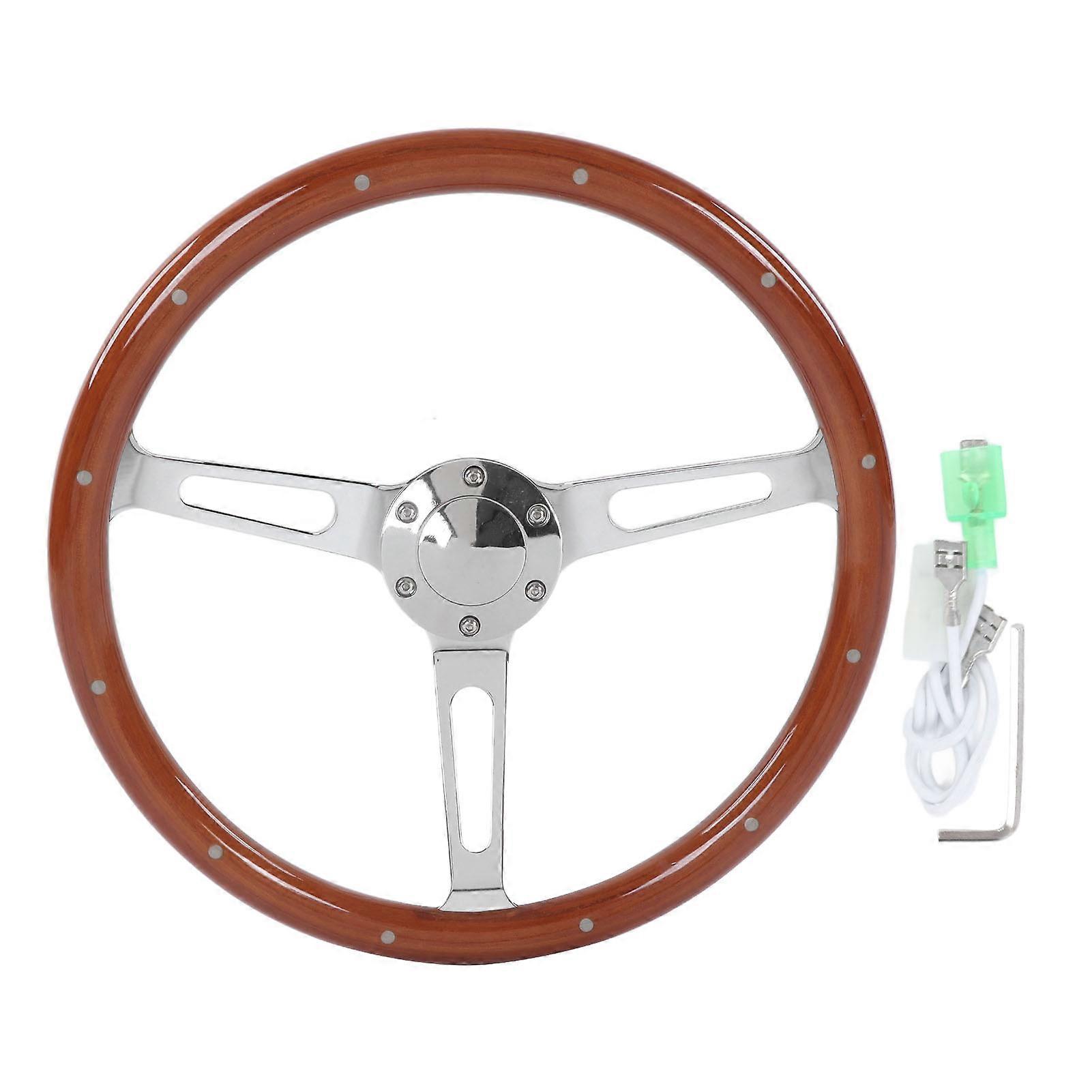 380mm 15in Classic Steering Wheel Assembly Walnut Grip 3 Spoke Riveted 6 Hole Universal Modification