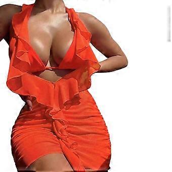 3PCS Women Swimsuit Swimming Costume Set orange red S