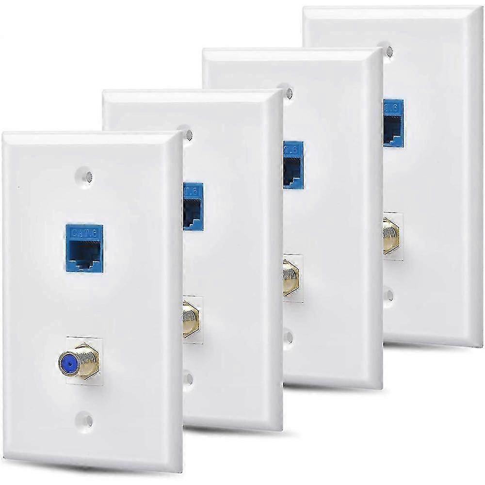 4 Packs Ethernet Wall Plate Outlet with 1 Cat6 Port and 1 Gold-Plated F Type Port RJ45 Wall Plates 2025