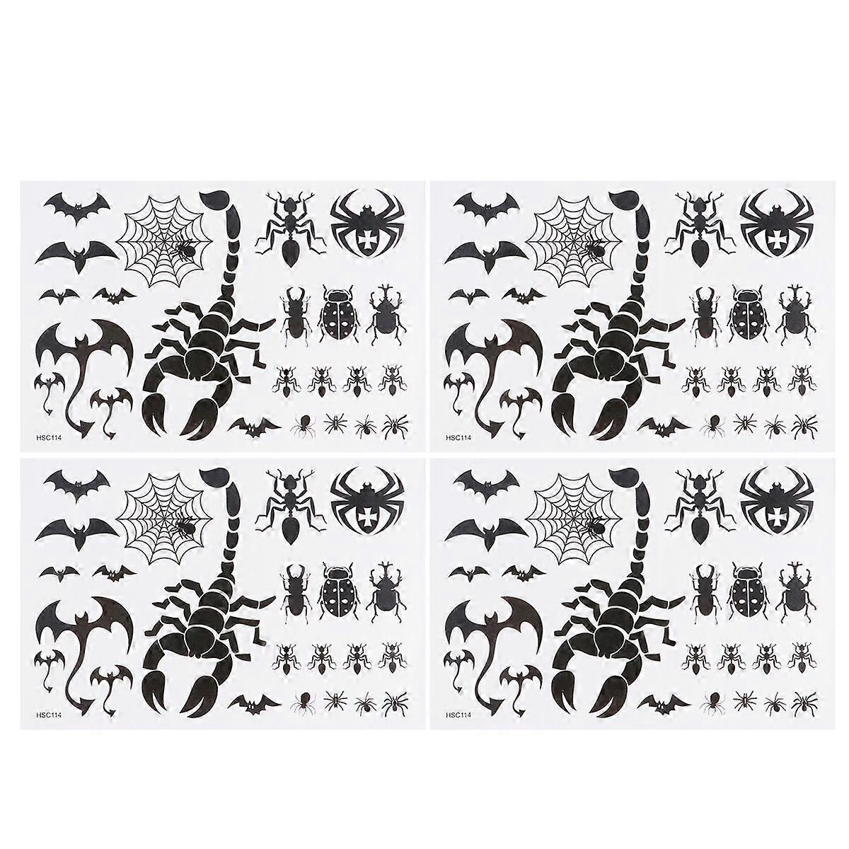 4pcs Fashion Temporary Simulation Body Art Waterproof Scorpion Bats Spider Tattoos Stickers Party Supplies