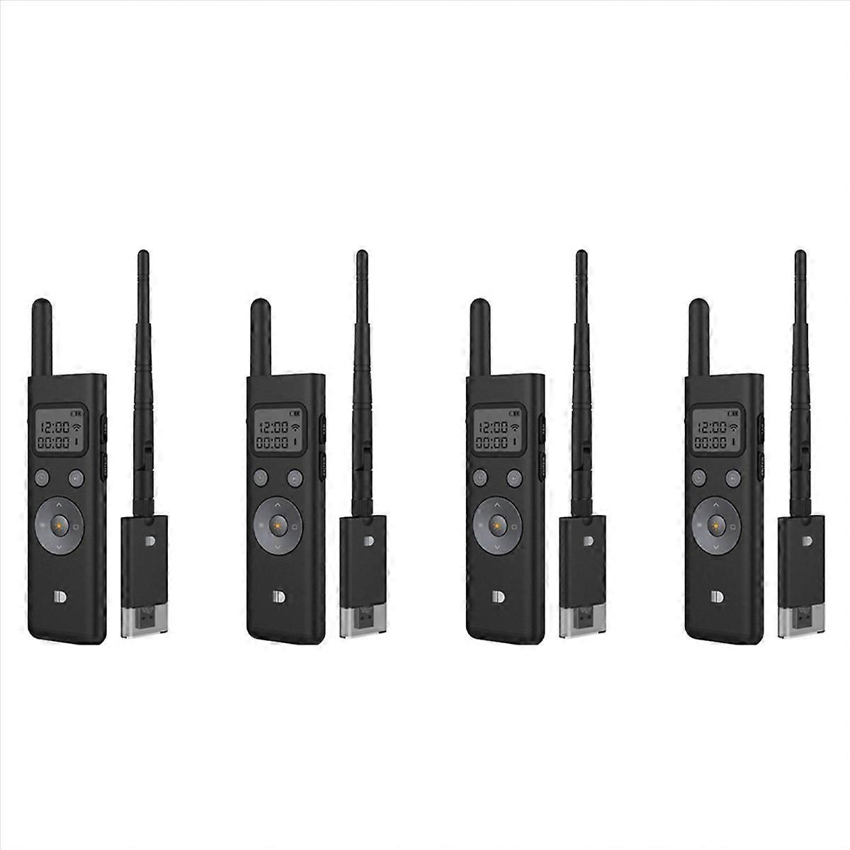 1. Page turning pen: The 300-meter ultra-long control distance is more suitable for presentations in large conference . It can move freely in the room and control the ppt at any time. 2. The green , which is 10 times brighter than the red , is suitable for all demonstration screens. It can be displayed clearly even in a bright room and give more effective speeches in a bright and comfortable atmosphere. 3. With LCD screen to display the time, with timer and silent vibration reminder, to help you master the time, no need to stare at the clock all the time. The 1000 mAh lithium battery supports long-term operation. 4. The mini USB receiver supports plug-and-play technology, no need to drive, plug in the computer to start the demonstration, no need to wait. 5. Support page up, page down, full screen, black screen, hyperlink, support most presentation software, compatible with 2003, XP, Vista, 7, 8, 10, OS, Linux, Android, etc. . safety warning: 1. Warning 433MHz transmitter is not a toy; under no circumstances should it be pointed at human eyes or airplanes. 2. The flip pen is only for adults. 3. It is illegal to aim at any flying objects, moving vehicles and any public or private buildings. 4. The should not be directed at people or animals. 5. If used improperly, the page turning pen may be very dangerous. Colour:Black Material:Plastic Package Contents: 4 x Wireless Powerpoint 4 x Receiver Only the above package content, other products are not included. Note: Light reflection and different displays may cause the color of the item in the picture a little different from the real thing. The measurement allowed error is +/- 1-3cm.