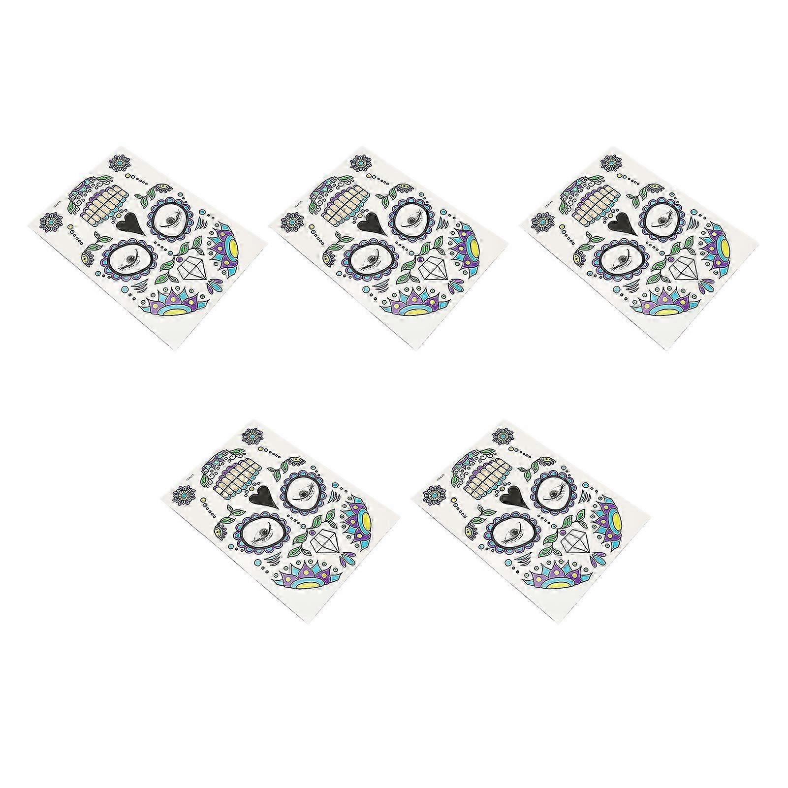 5 Sheets Skeleton Face Tattoo DIY Clear Pattern Skin Friendly Temporary Skull Face Tattoo for Halloweenx