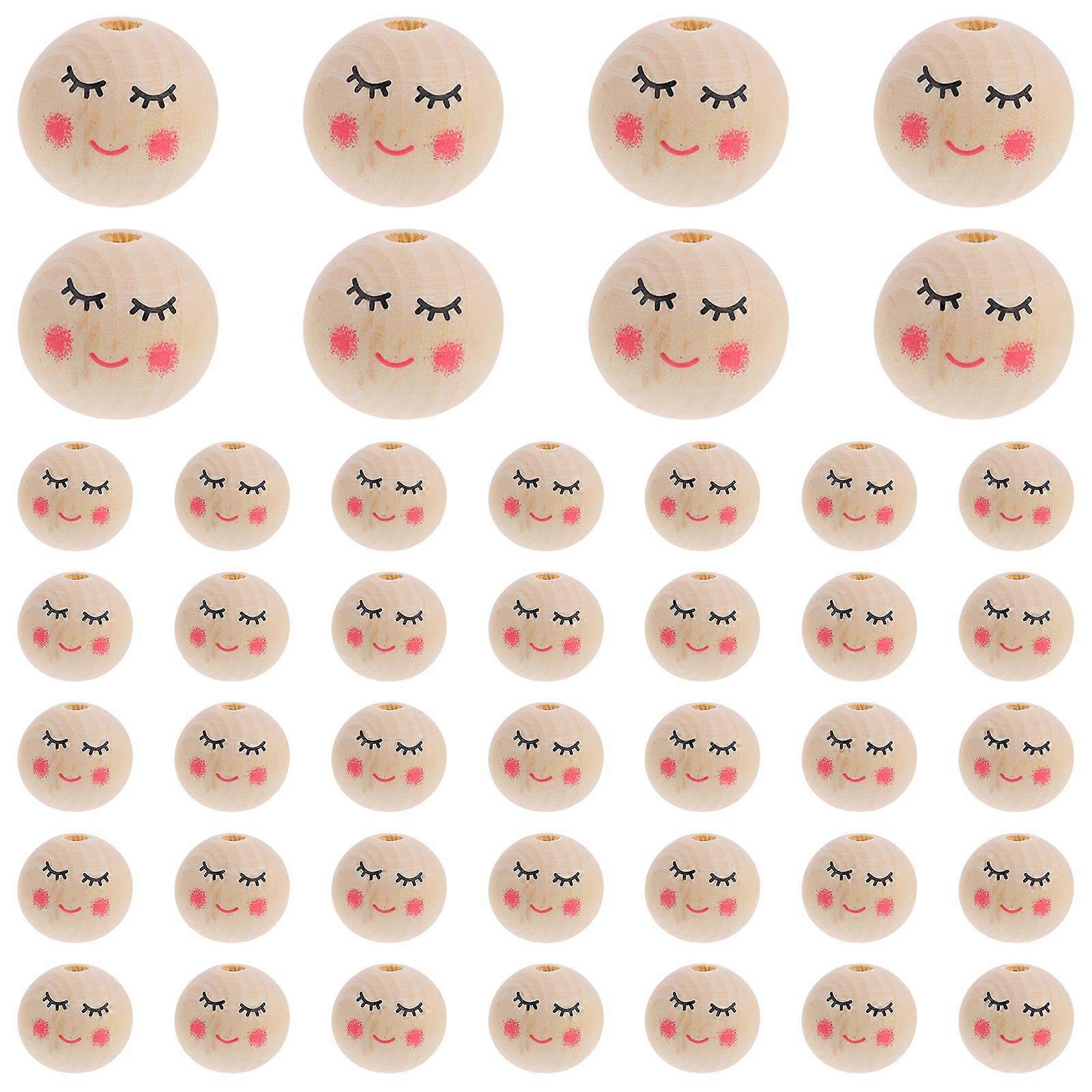 50Pcs Face Pattern Loose Beads Multi-purpose DIY Wood Beads Craft Making Beads Wood Beads