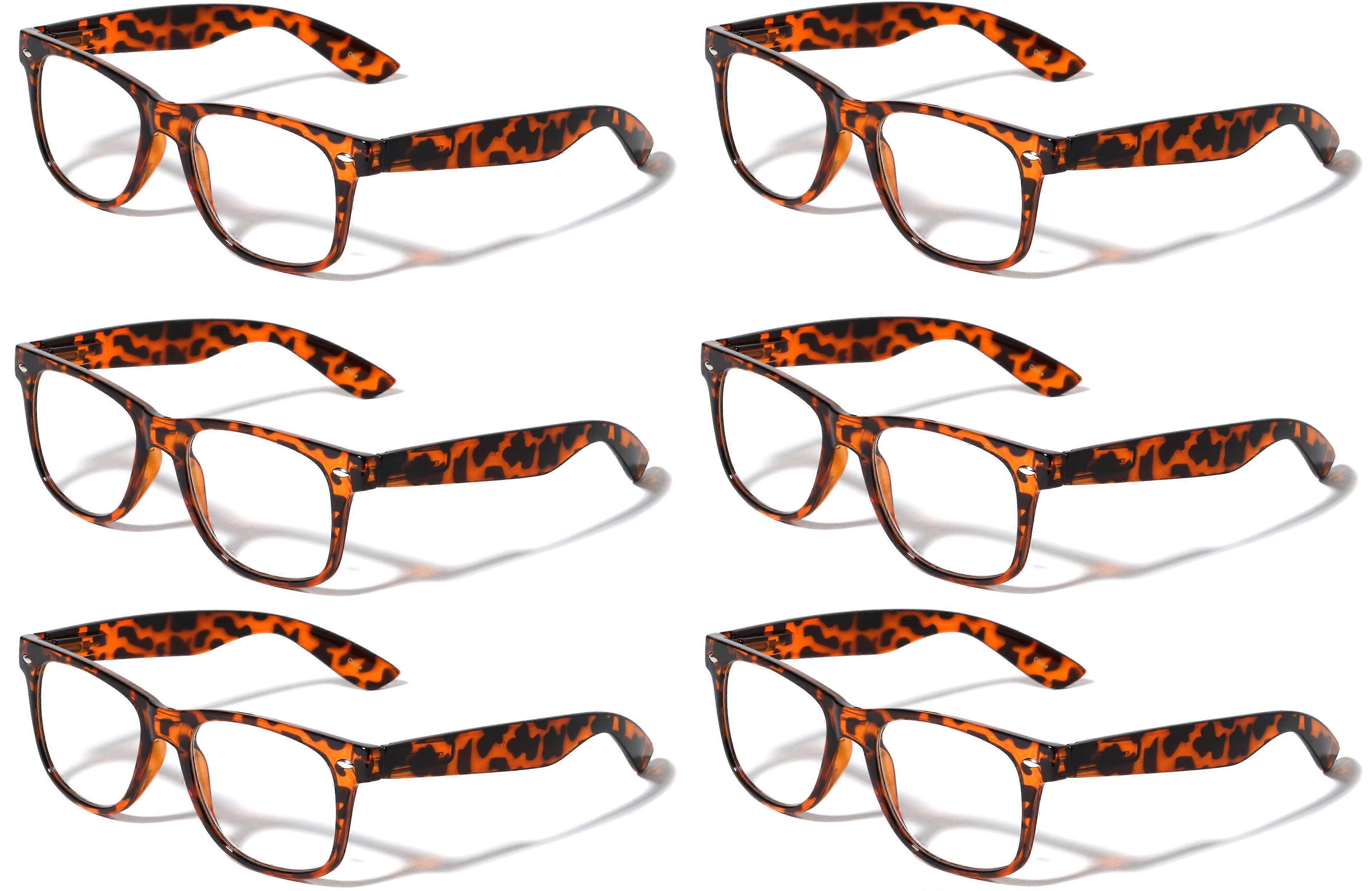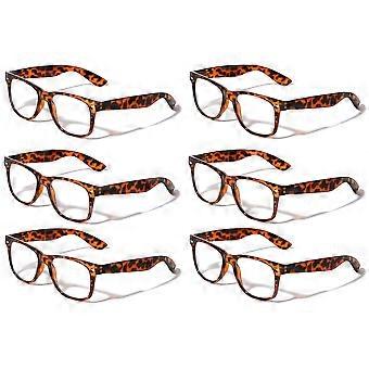 6 Pairs of Classic Comfortable Reading Glasses - Spring Hinge Neon Color Clear Lens Readers