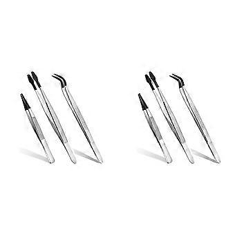 6 Pcs Rubber Tipped Tweezers, 6Inch Straight Flat Tweezers & 6Inch Bent Tip Tweezers & 4.7Inch Poin