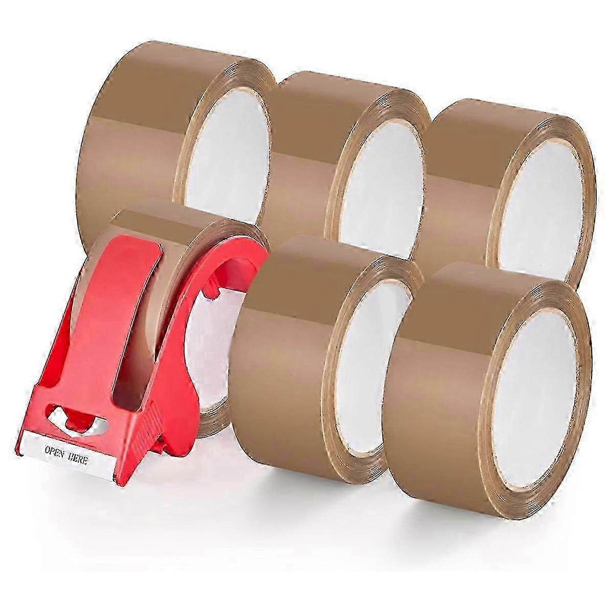6 Rolls Heavy Duty Brown Packing Tape with Dispenser, 1.88" Wide, 60 Yards