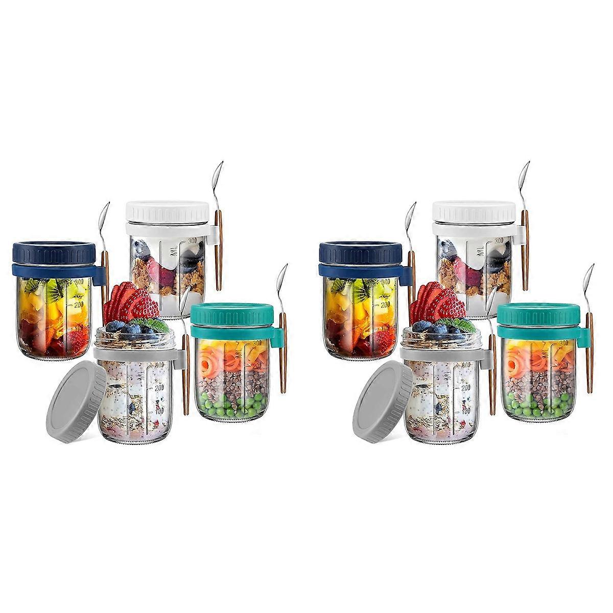 8 Pack Overnight Oats Containers with Lids and Spoons, 12 Oz Glass Overnight Oats Jars, Airtight Oat