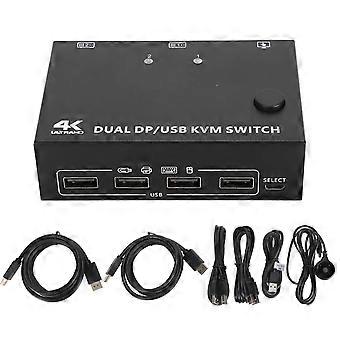 8K 2 Monitors 2 Computers USB 2.0 Port 2 in 2 Out DisplayPort 1.4 Dual Monitor KVM Switch Plug and Play