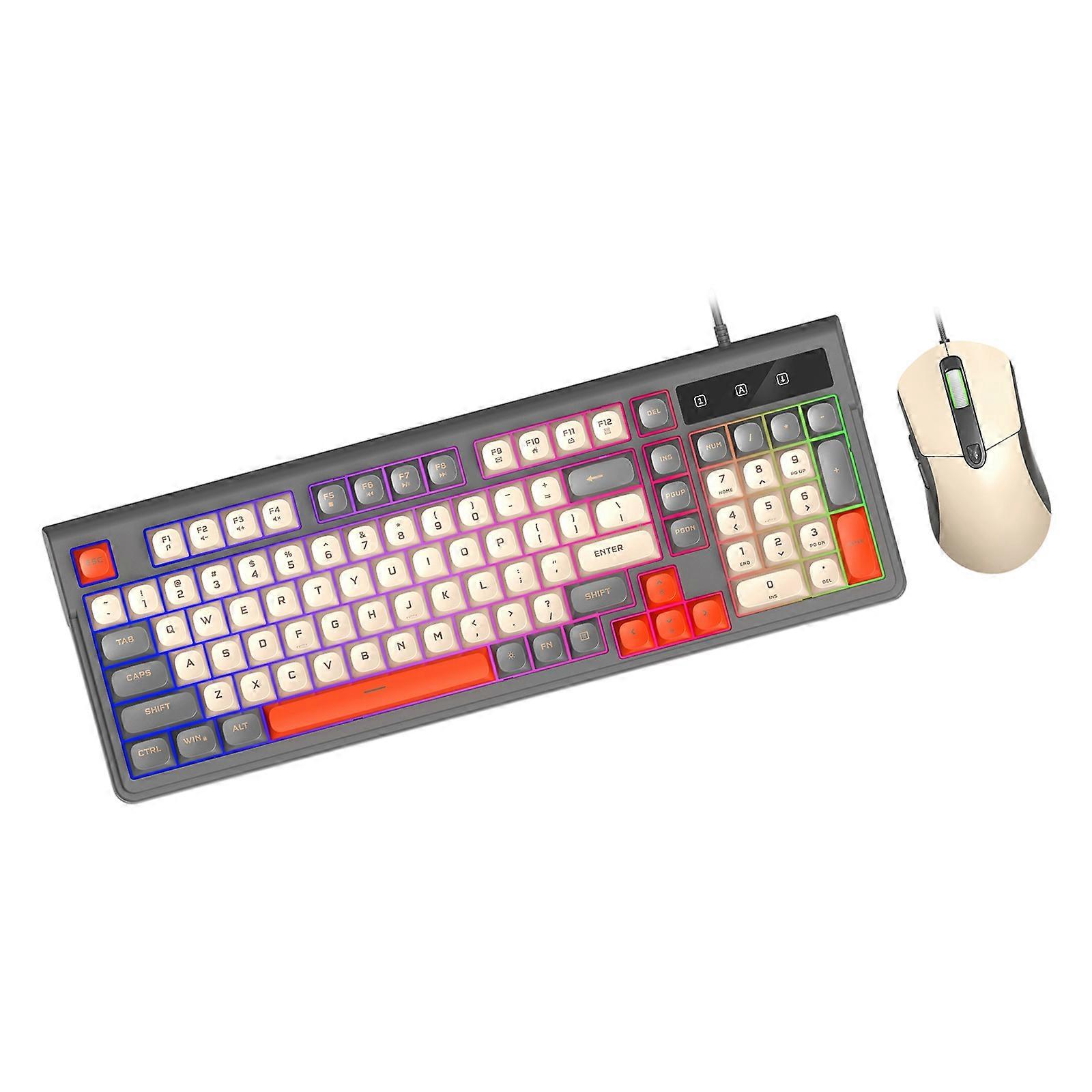 98Keys Keyboards Mouse Combo RGBs Lighting USB Connection Mechanical Touch for Gaming Office Use AntiSlip Base Multicolor