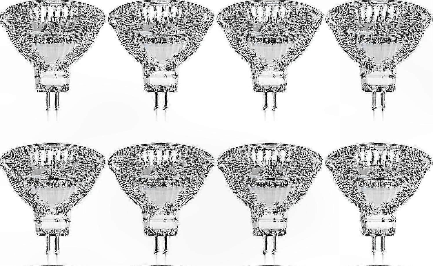 GU5.3 MR16 35W 12V Dimmable Halogen Bulbs, Warm White 2800K, 400 Lumens, Glass Cover, Pack of 8