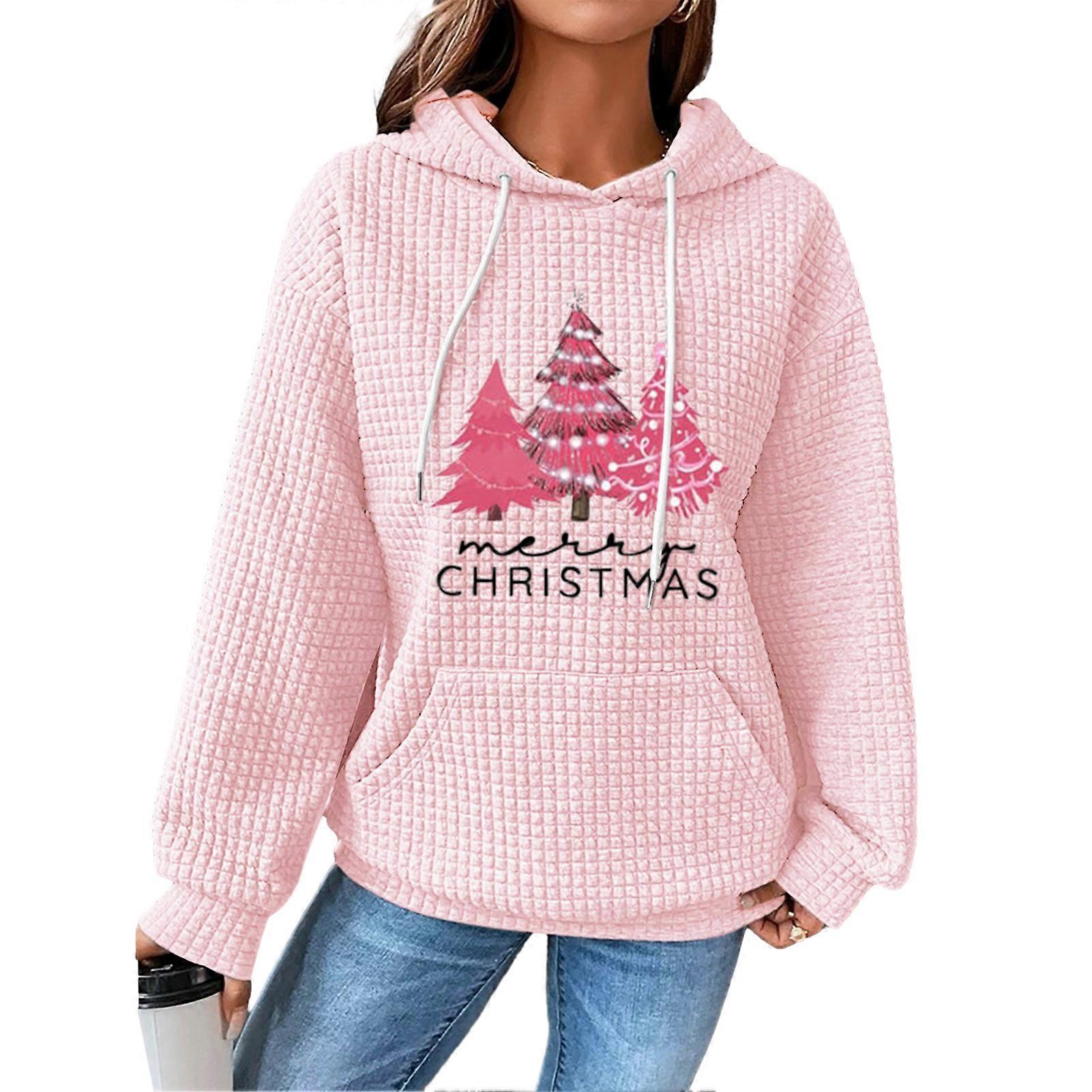 Christmas Tree Print Hoodie Women's Waffle Knit Pullover Sweatshirt for Holiday & Winter Fashion