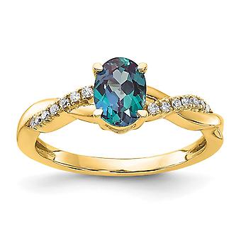 10k Solid Yellow Gold Oval Created Alexandrite And Diamond Ring Size 7.00-Ring for Women