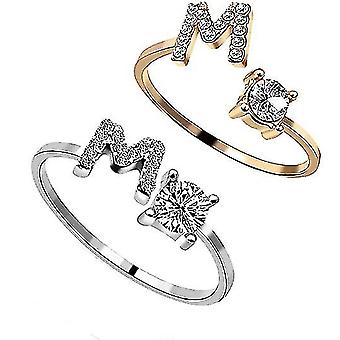Bague pour femme en métal argenté et doré, ajustable, avec initiales et nom.