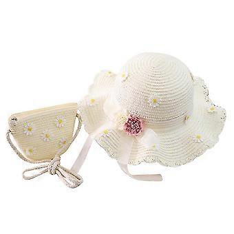 2pcs Sac de mode Enfants Daisy Sun Hat Girls Summer Beach Hat Wave Chapeau de paille Topee Enfants Chapeau et sac pour filles (blanc laiteux)
