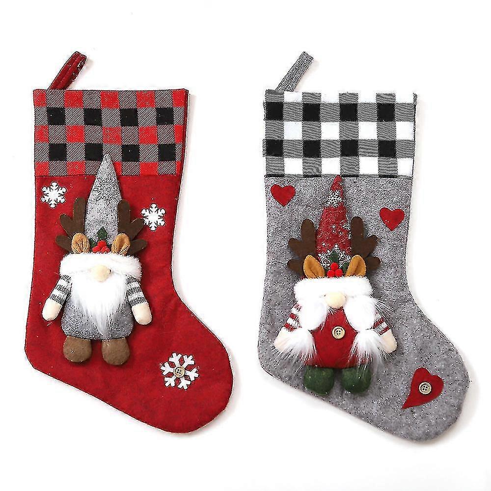 Christmas Stocking 2pack, 3d Gnomes Santa Christmas Stockings Fireplace Hanging Stockingsredgrey bd