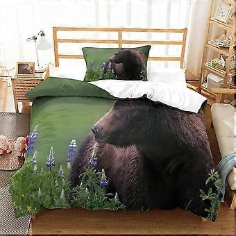 Bedding Grizzly Printed Bedding Set Single Size Duvet Cover Super Soft Breathable Microfiber Quilt Cover with Pillowcase with Zipeer Closure Hypoaller