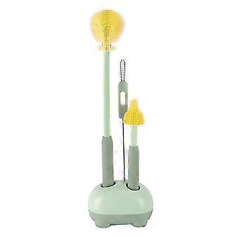 3pcs kit de brosse de nettoyage en silicone nettoyant de biberon de lait pour bébé brosse à mamelon brosse de nettoyage de paille (vert sans BPA