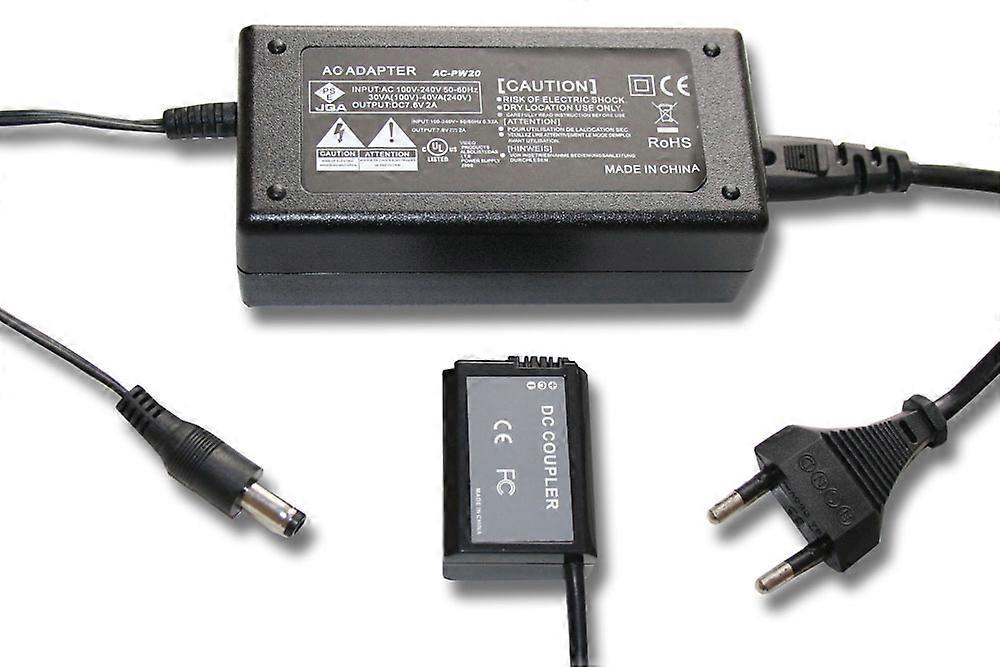 vhbw Netzteil kompatibel mit Sony Alpha SLT-A33Y, SLT-A35, SLT-A33L, SLT-A35Y, SLT-A35K, SLT-A55VL, SLT-A55V Kamera, Digitalkamera + DC Kuppler, 2m